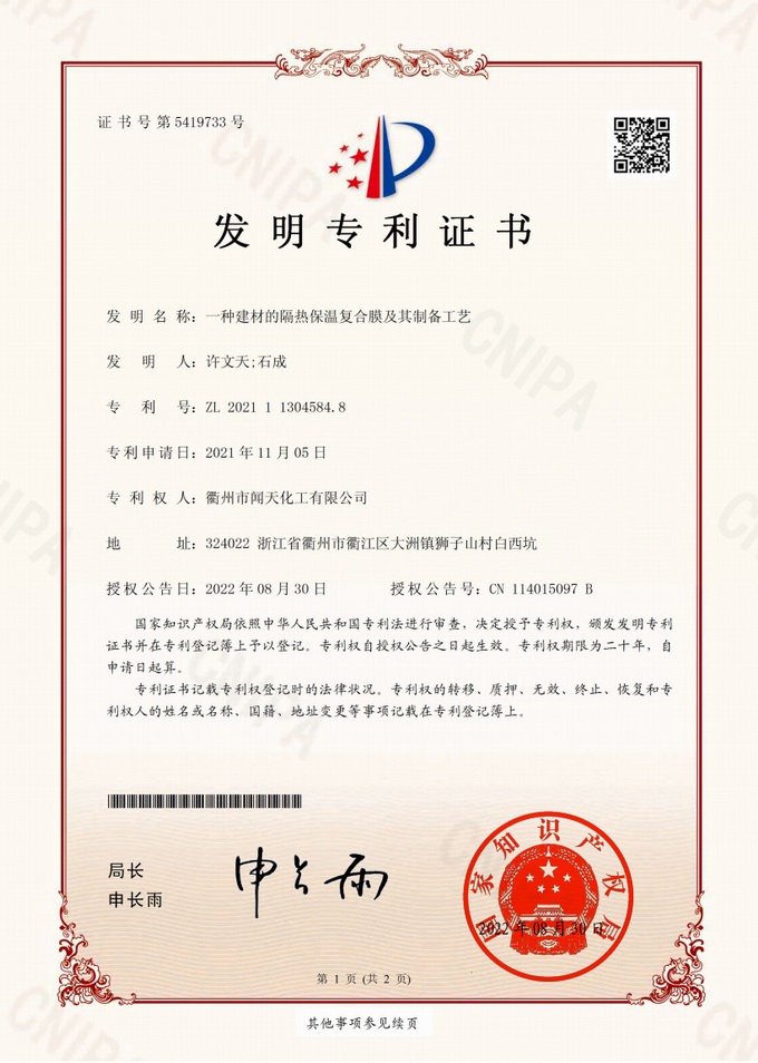 衢州市聞天化工有限公司成立于2003年,是國內(nèi)研發(fā)、生產(chǎn)氟碳涂料的企業(yè)。衢州傳褀防水防腐工程科技有限公司作為其下屬公司,專業(yè)承接各類防水防腐項目。企業(yè)經(jīng)過20年的市場磨練,已在鋼構防腐領域、建筑屋面和屋面修繕、防水隔熱領域、建筑外立面的防水隔熱裝飾領域及戶外竹木防腐領域形成了自己獨特的產(chǎn)品體系和個性化解決方案。公司經(jīng)過多年的努力,已獲得了多項國家發(fā)明專利和新產(chǎn)品科技成果,并參與了中國建筑材料流通協(xié)會組織的《房屋修繕防水工程規(guī)范》的編制,中建協(xié)涂裝委員會浙西工作站設立在我公司。公司的產(chǎn)品有一個共同的特點,就是經(jīng)久耐用,使用年限超長。鋼構防腐的效果是其他材料的三到五倍使用壽命;屋面防水隔熱的效果是其他材料的三到五倍的使用壽命;建筑外立面的效果是既防水又隔熱保溫,既美觀又不褪色;戶外竹木防腐的效果更是其他材料五倍以上的壽命。